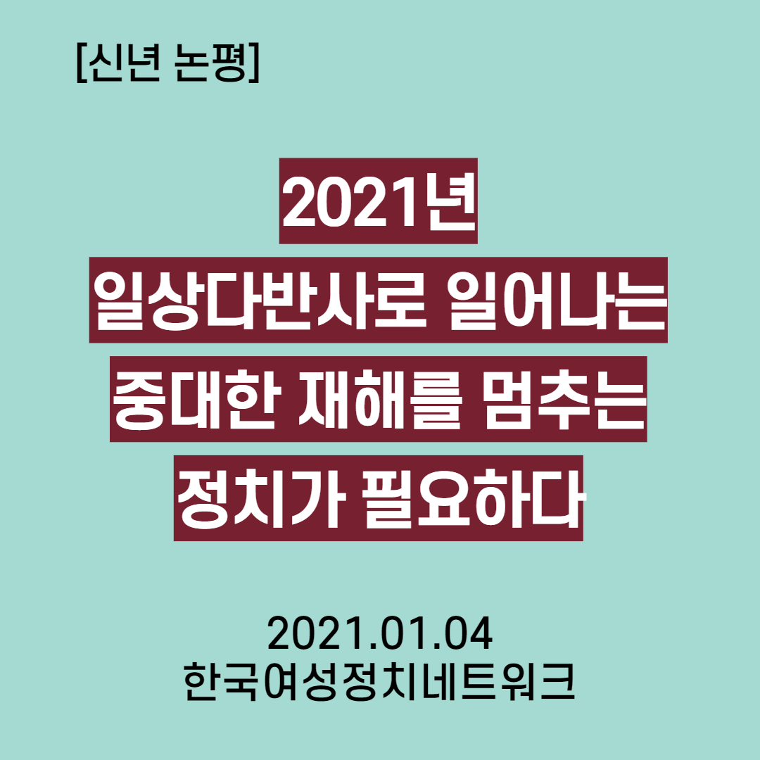 2021년 일상다반사로 일어나는 중대한 재해를 멈추는 정치가 필요하다